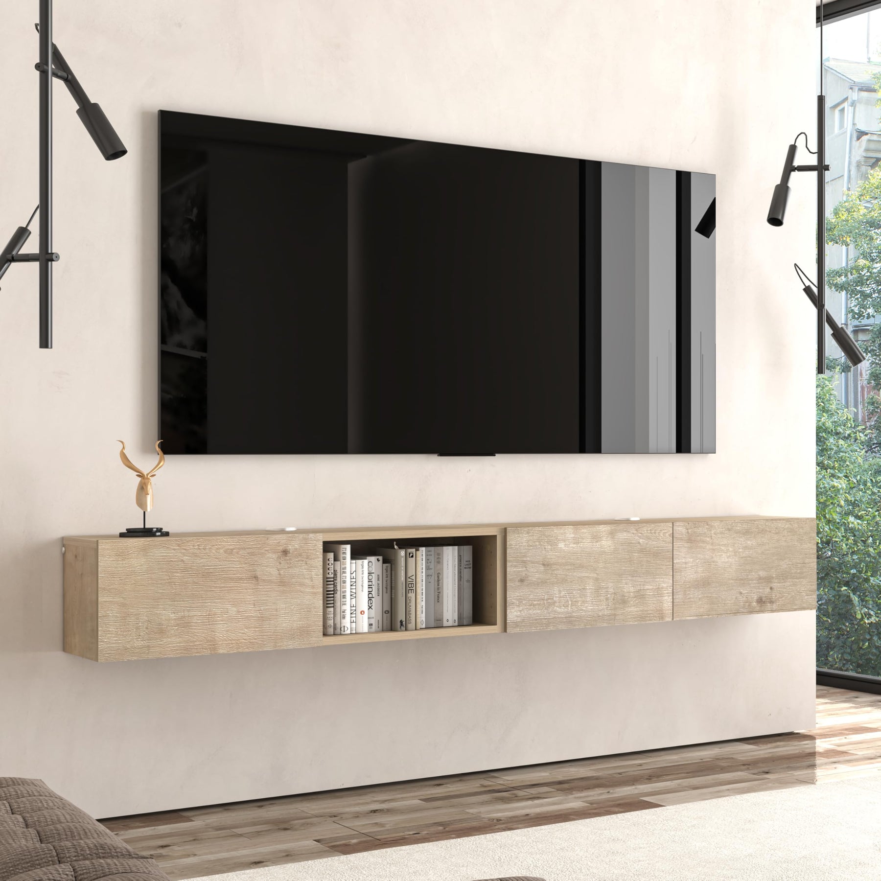- Elegant Floating TV Stand: Available in various finishes like OAK and walnut, this floating tv stand serves as a stylish tv stand 55 inch and under tv cabinet. Its floating tv stand wall mounted design enhances your decor while maximizing space efficiency in your living area.